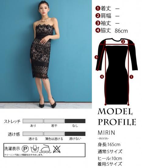 韓国製 | rinfarre | ゴールド×ブラックレース ベア タイト ミディアムドレス ワンピース