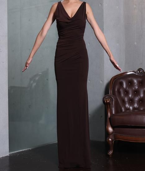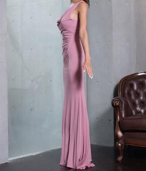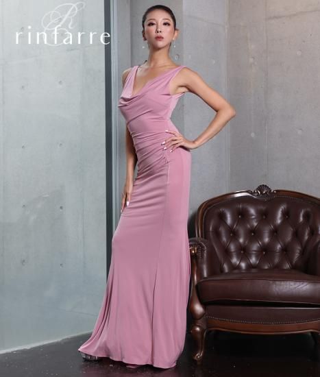 セール |韓国製 | rinfarre | シンプル 胸元ドレープ 無地 ノースリーブ ストレッチ 大人 エレガント マーメイドライン ロングドレス my