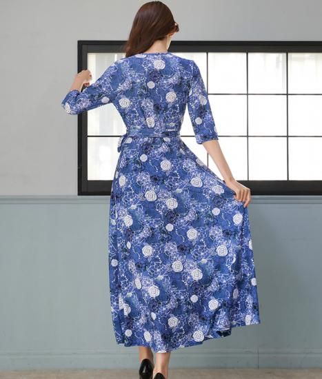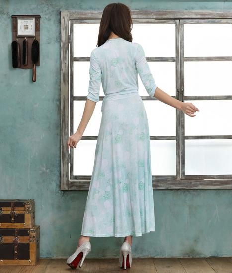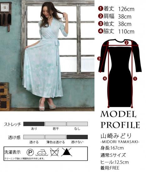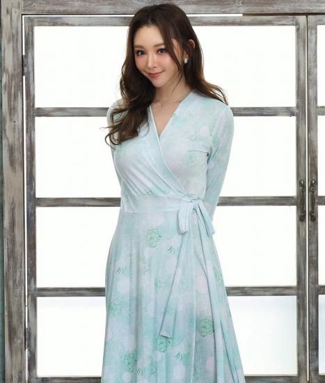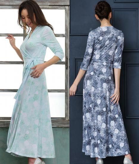セール|韓国製 | rinfarre | 花柄 水彩画風 パステルVネック カシュクール 七分袖 マキシ ロングドレス ワンピース mygygr