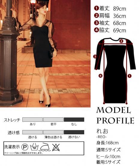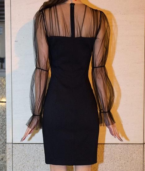韓国製 | rinfarre | ブラックオーガンジーレイヤード Vネック 長袖 シンプル タイト ショート ミニドレス ワンピース