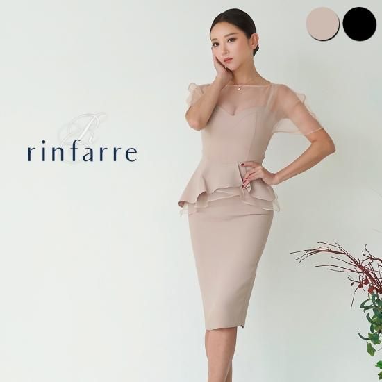 韓国製 | rinfarre | 無地 オーガンジー レイヤード ペプラム タイト ミディアムドレス ワンピース myju