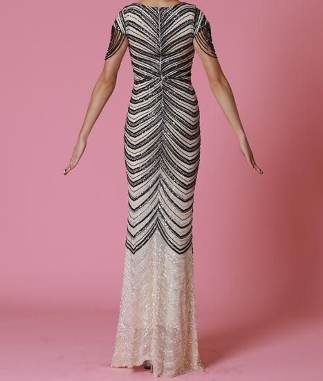 韓国製 | rinfarre | ラインデザイン 総スパンコール デザインスリーブ 刺繍 マーメイドライン ロングドレス mynv