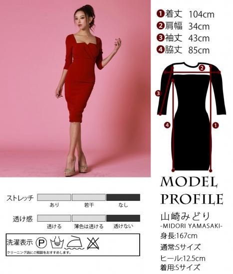 韓国製 | rinfarre | 七分袖 スクエアネック ハイウエスト シンプル タイト ミディアムドレス ワンピース myrd