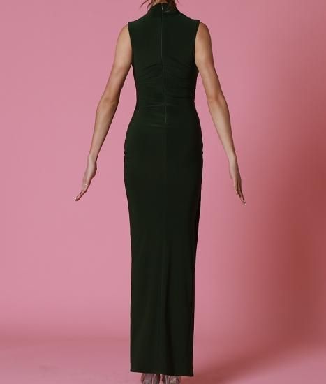韓国製 | rinfarre | スモーキーカラー 無地 ポイントジュエリー ストレッチ タイト ロングドレス myall