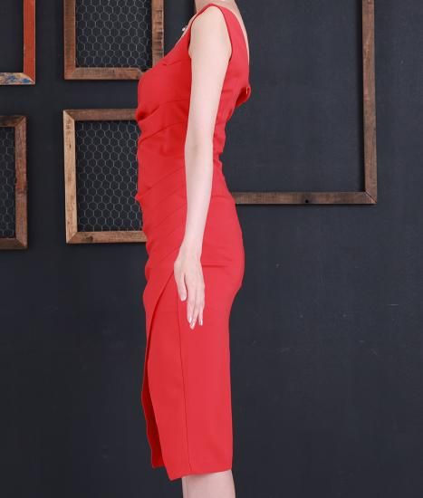 セール|韓国製 | rinfarre | シンプル アシメントリー サイドスリット 無地 タイト ミディアムドレス ワンピース