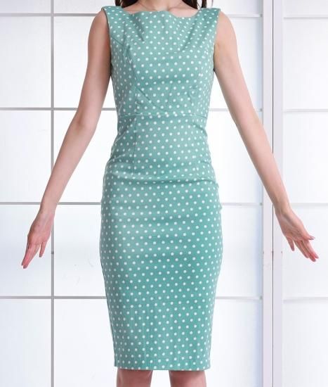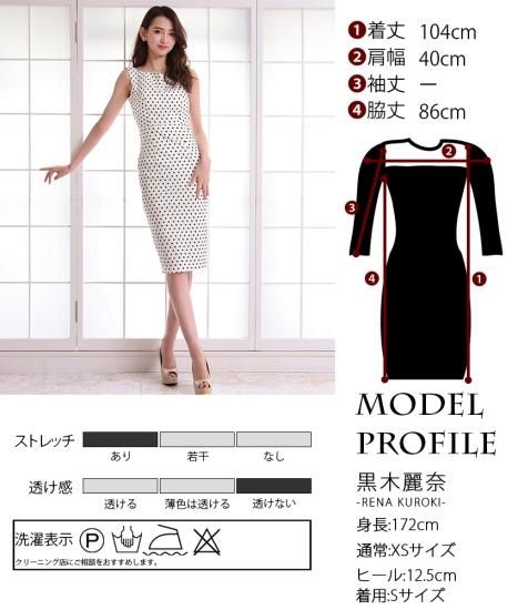 韓国製 | rinfarre | ドット 水玉 ボートネック ノースリーブ タイト ミディアムドレス ワンピース