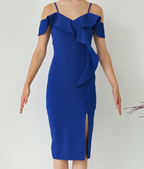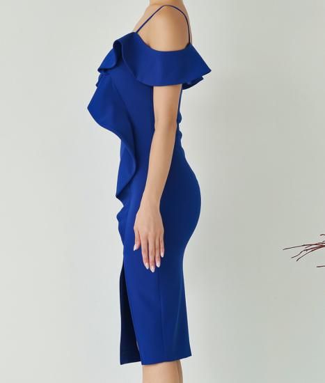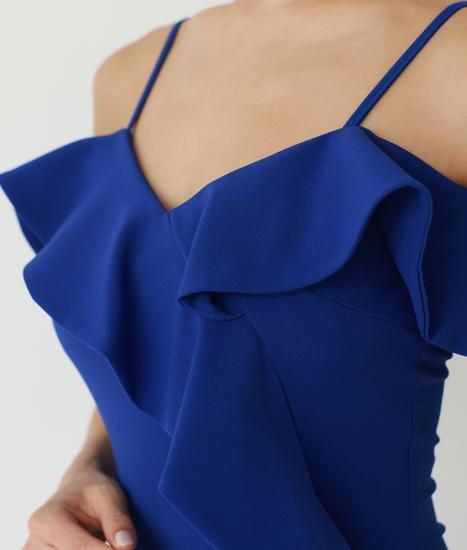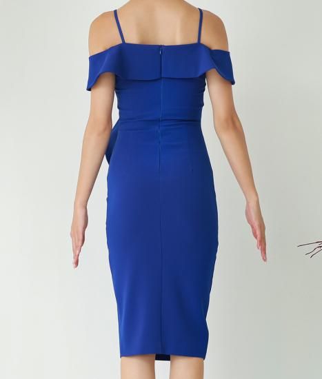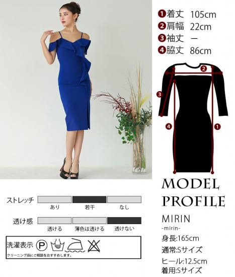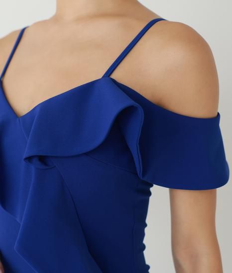 セール | 韓国製 | rinfarre | フリル オフショルダー ブルー バイカラー セクシー タイト ミディアムドレス ワンピース