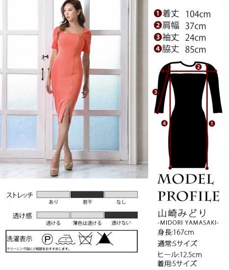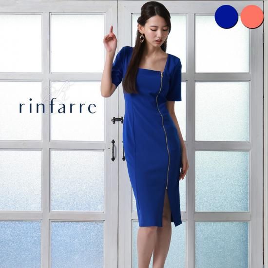 セール | 韓国製 | rinfarre | 半袖 フロントファスナー スクエアネック タイト ミディアムドレス ワンピース myog