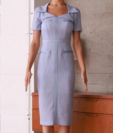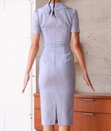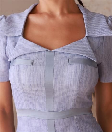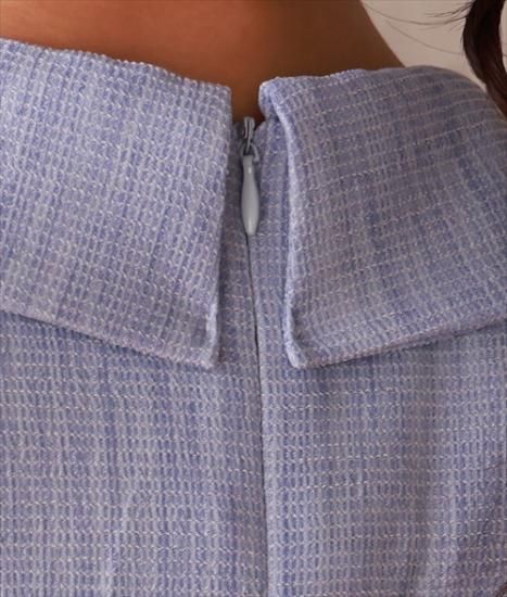 セール |韓国製 | rinfarre | 半袖 開襟 ツイード ライトブルー タイト ミディアムドレス ワンピース