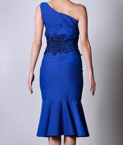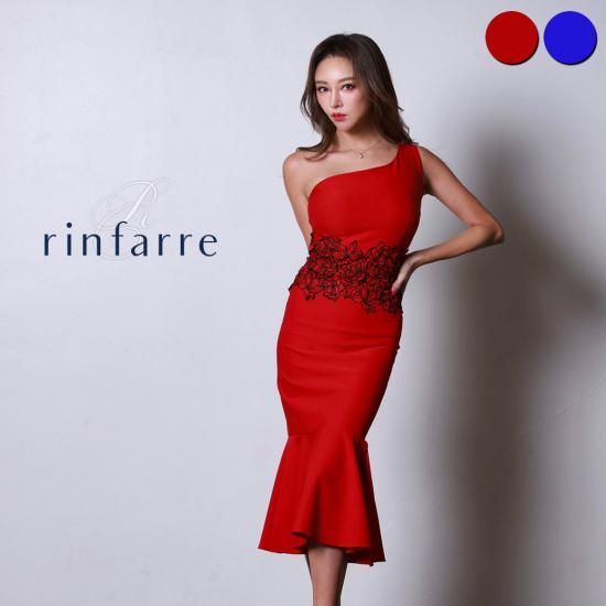 セール | 韓国製 | rinfarre |シンプル ウエストレース ワンショルダー マーメイドライン オフショルダー タイト ミディアムドレス ワンピース myrd