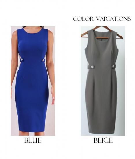 韓国製 | rinfarre | ノースリーブ ブルー ウエストカット 飾りボタン タイト ミディアムドレス ワンピース