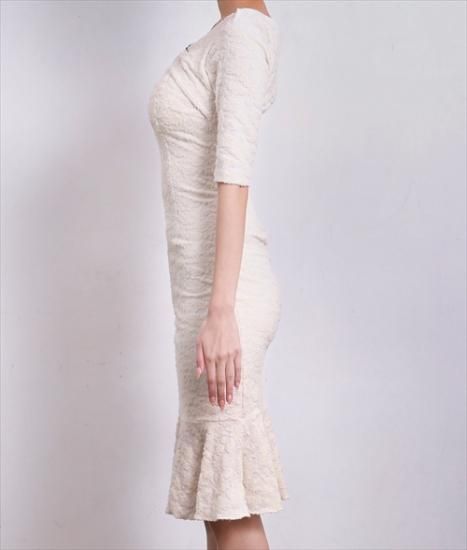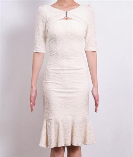 韓国製 | rinfarre |リップル生地 五分袖 リボン風 胸元カット マーメイド タイト ミディアムドレス ワンピース