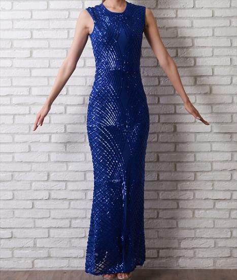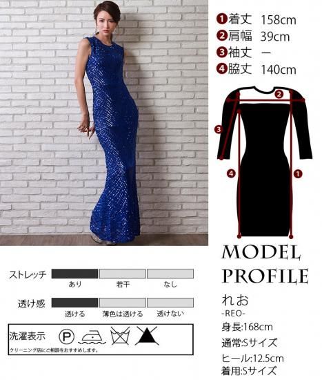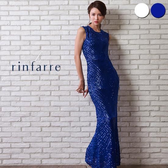 韓国製 | rinfarre | ラインデザイン 総スパンコール ノースリーブ ストレッチ 刺繍 キラキラ マーメイドライン ロングドレス