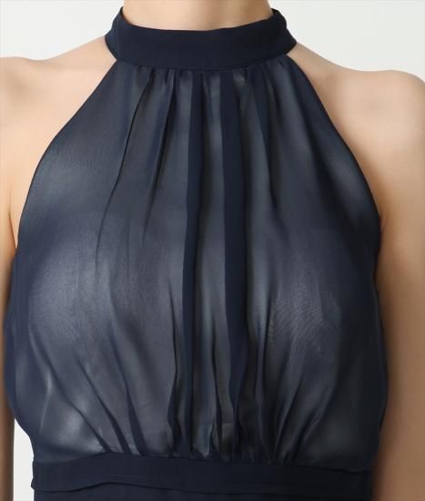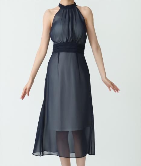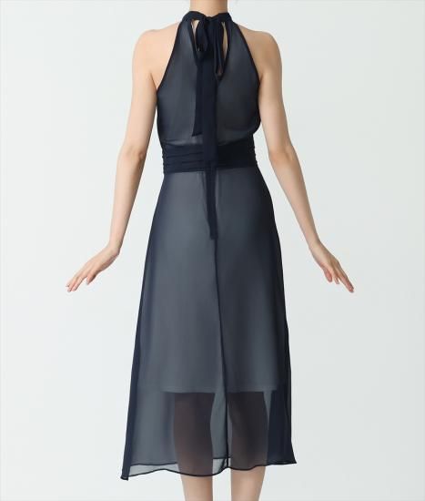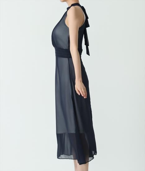 韓国製 | rinfarre | ホルターネック シースルー Aライン プリーツ シフォン ノースリーブ ミディアム ひざ下 ワンピース ドレス