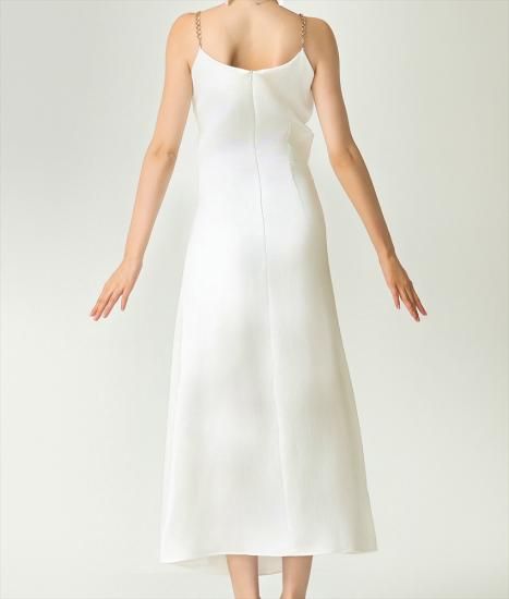 韓国製 | rinfarre | シンプル ノースリーブ チェーン サテン 無地 ミモレ丈 Aライン スリット ロングドレス ワンピース
