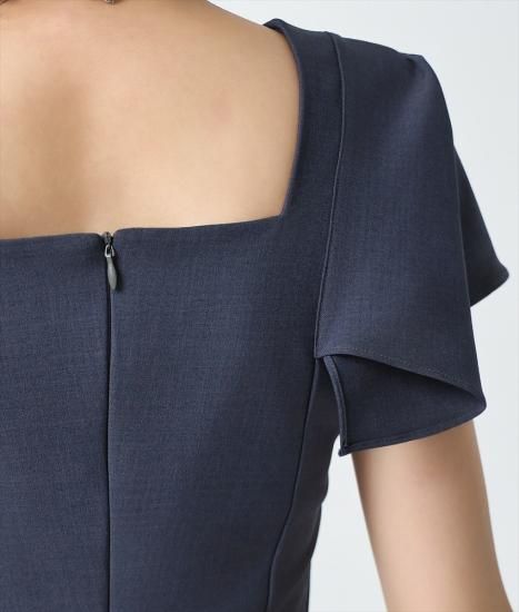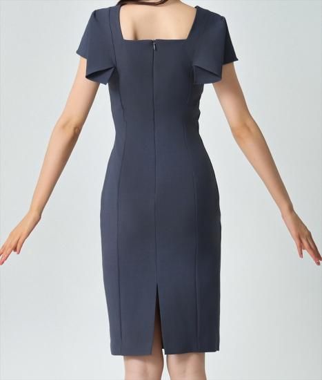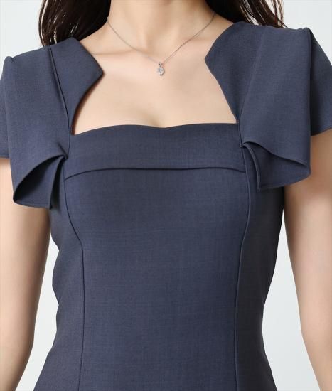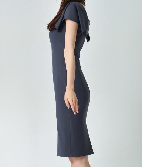 韓国製 | rinfarre | グレー 半袖 フリル タイト ミディアムドレス ワンピース