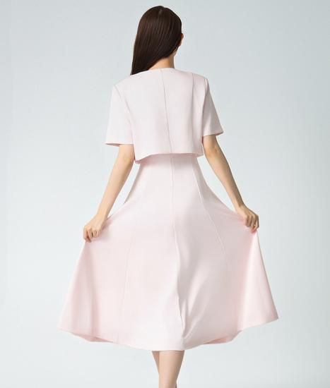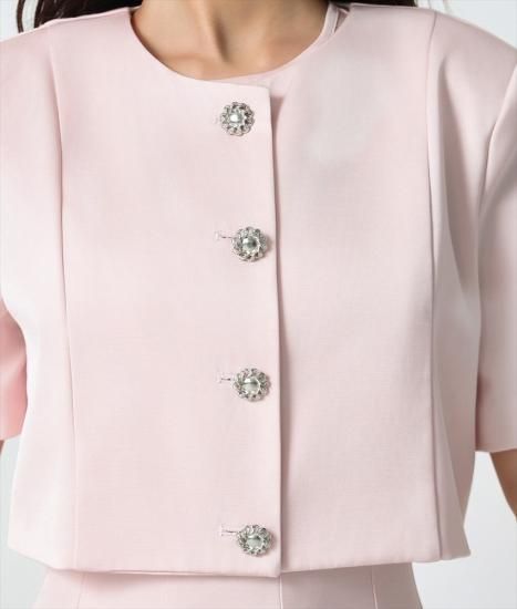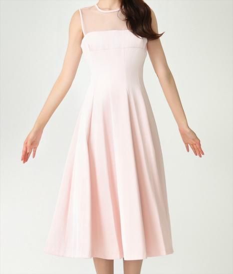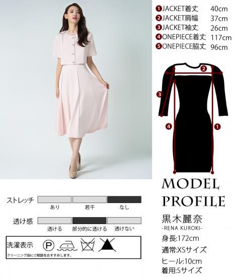 韓国製 | rinfarre | ジャケット セットアップ ピンク Aライン シースルー 半袖 ノースリーブ ミディアムドレス ワンピース