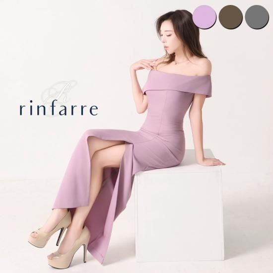 韓国製 | rinfarre | ニュアンスカラー 半袖 オフショルダー スリット シンプル 無地 タイト ロングドレス ワンピース myldbw