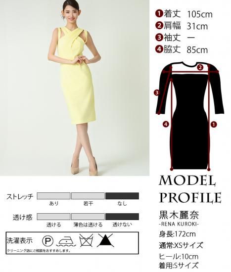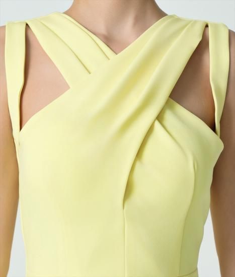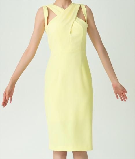 韓国製 | rinfarre | イエロー シンプルデザイン ノースリーブ クロス タイト ミディアム ひざ下 ワンピース ドレス