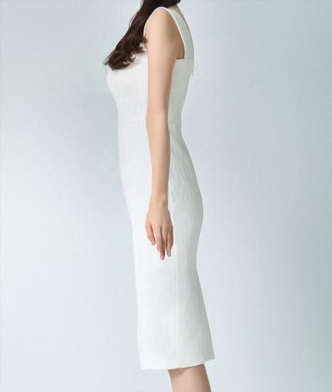 韓国製 | rinfarre | ノースリーブ シンプル タイト ミディアムドレス ワンピース アイボリー