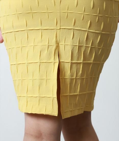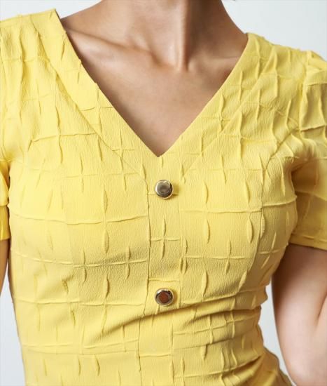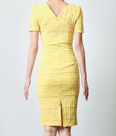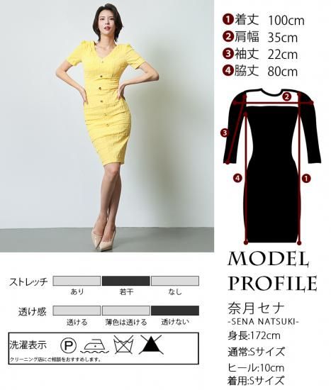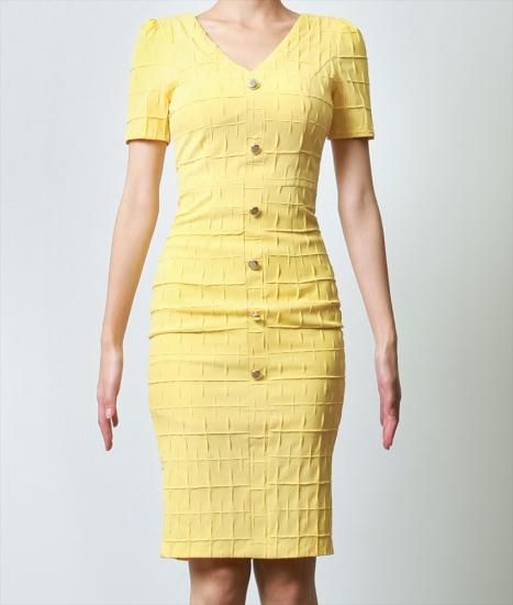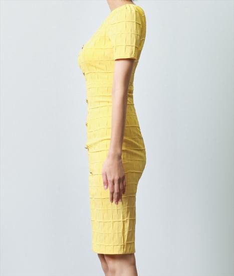 韓国製 | rinfarre | イエロー 半袖 ボタン タイト ミディアムドレス ワンピース