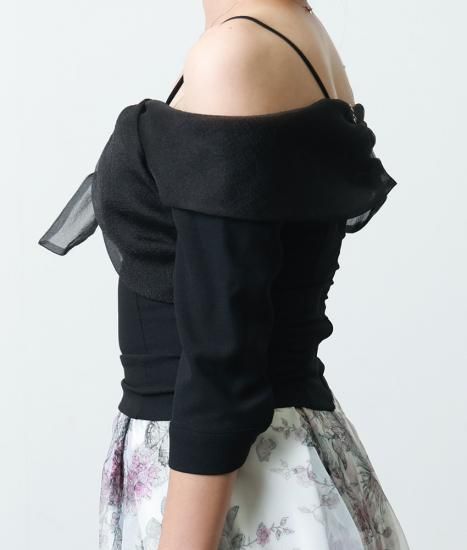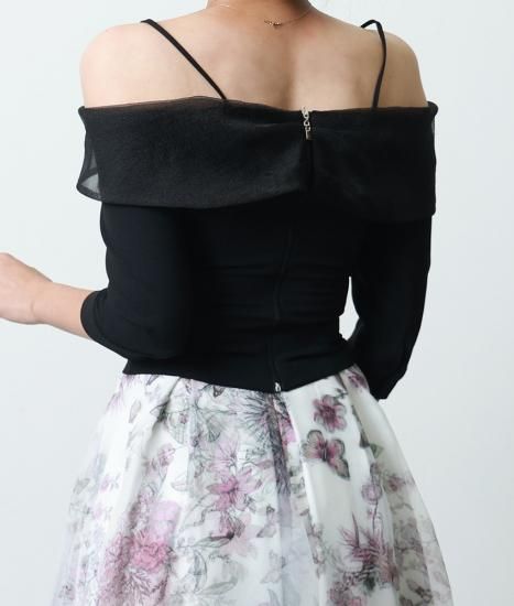 韓国製 | rinfarre | オフショルダー 肩紐 ホワイト ブラック ワンポイント リボンモチーフ 上品 ブラウス シンプル