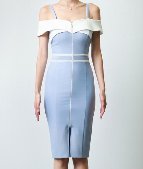 韓国製 | rinfarre | ブルー オフショル キュート ミディアム ドレス ワンピース