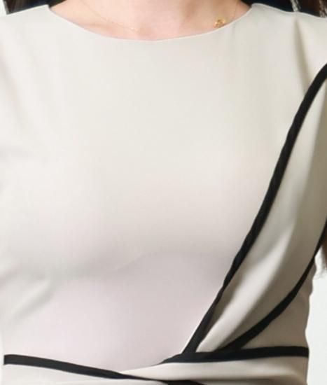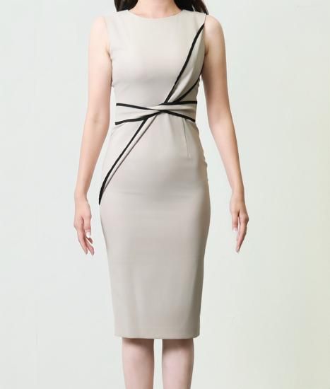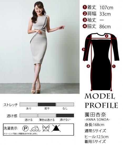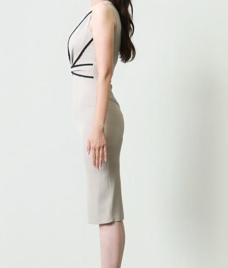 韓国製 | rinfarre | シンプル バイカラー リボンノースリーブ タイト ミディアムドレス ワンピース