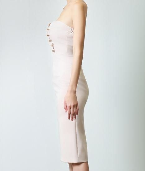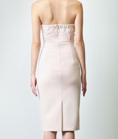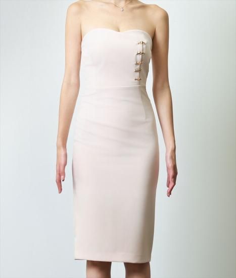 韓国製 | rinfarre | ベア ベージュ 金具付き ノースリーブ ミディアムドレス タイト ワンピース