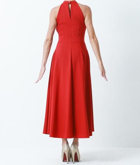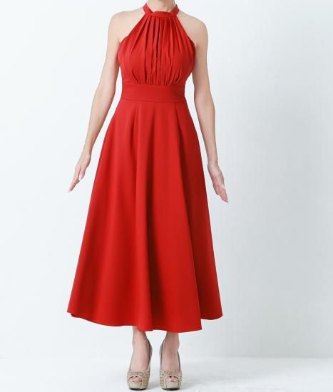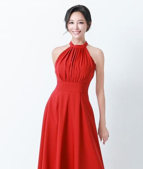 韓国製 | rinfarre | ホルターネック 胸元プリーツ シフォン Aライン ノースリーブ ロングドレス ワンピース myrd